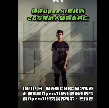 12月14日,OpenAI前員工巴拉吉被發現死在了公寓,警方經過調查,得出結論為自殺。
