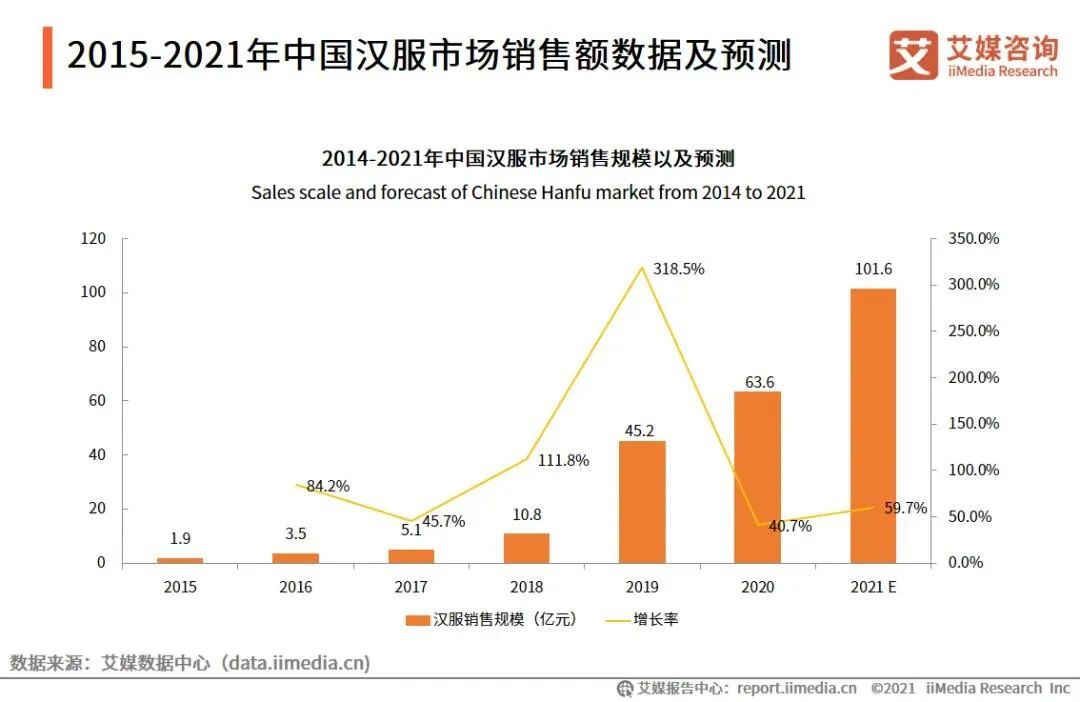 2021年漢服的銷售額,已經提升到了2018年的10倍左右。