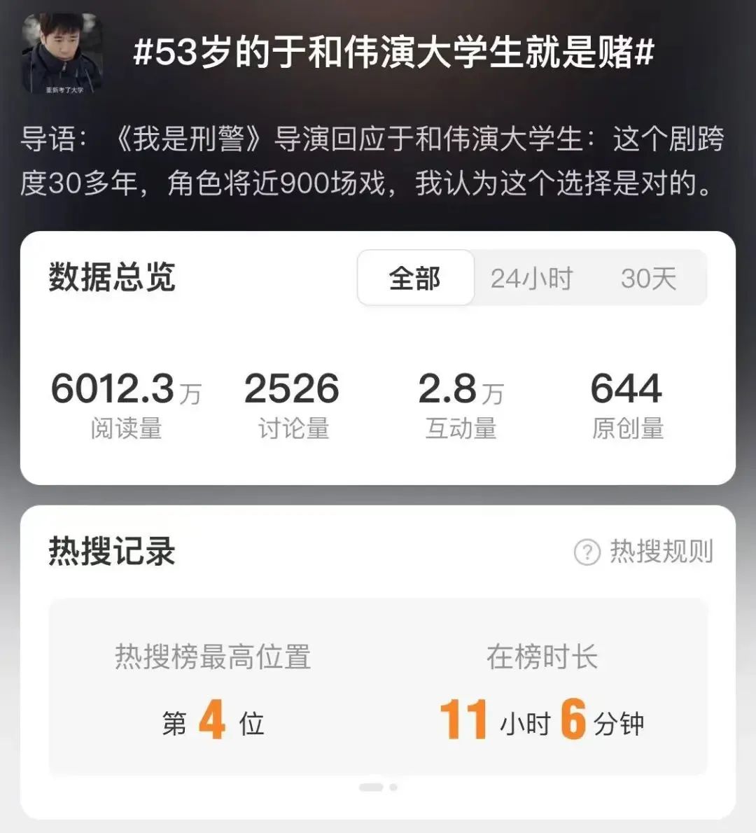 這部劇開播之後,#53歲的於和偉演大學生就是賭#登上熱搜,而這場“賭博”背後,是他這些年始終保持開放心態積累下的資本。