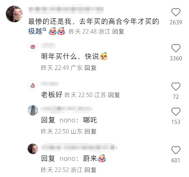 還有車主,去年買高合,今年買極越,瞬間被網友尊為**車圈閻王爺,**選誰誰就死。大家迫切地想知道,這位仁兄下台車買哪個品牌。