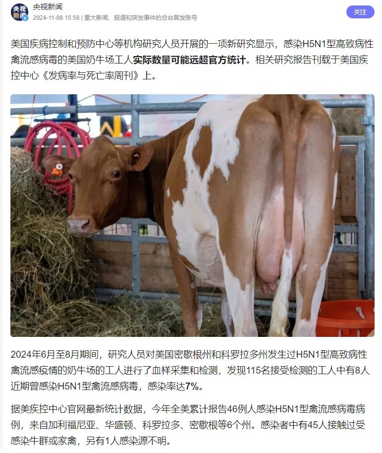 世衞組織通報説,其與聯合國糧食及農業組織(糧農組織)、世界動物衞生組織基於截至12月18日的數據聯合評估認為,迄今為止各國報告的人類感染H5N1型禽流感病毒病例數雖不斷增加,但在一般人羣中仍然有限。範凱爾克霍弗説,世衞組織評估認為,H5N1病毒仍是禽流感病毒,尚未適應哺乳動物宿主,也未獲得在人與人之間持續傳播的能力,但隨着病毒的進化,這種情況可能會迅速改變。