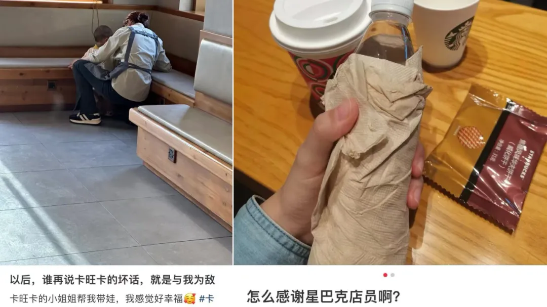 一位廣東網友分享,她因痛經走進一家星巴克索要一杯熱水,店員不僅遞上熱牛奶與餅乾,還拿來瓶裝熱水助其緩解疼痛,為防燙傷還特意裹上紙巾。