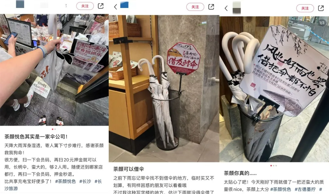 茶顏悦色的一些門店也會提供快遞寄取和雨傘,甚至有門店設置了急救藥箱供顧客使用。