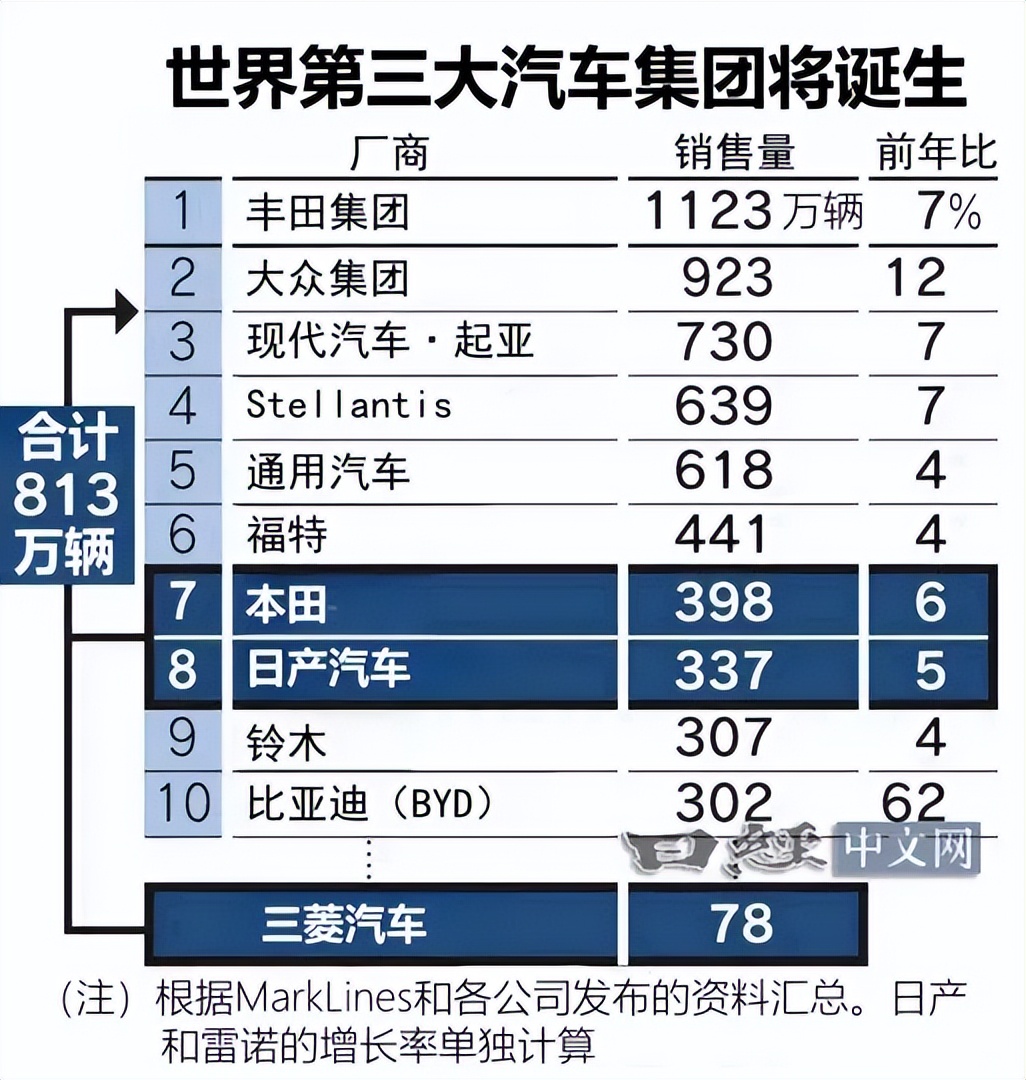 這次日產、本田合併,等於説是全球前十的汽車集團裏,日本就佔了兩家: