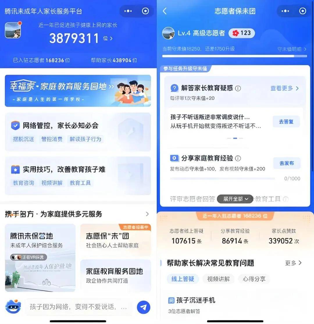 據統計,成立7年來,騰訊客服未保營地已為3600多萬用户提供未成年人健康用網和防沉迷知識和建議,累計深度溝通輔導8.7萬名家長。