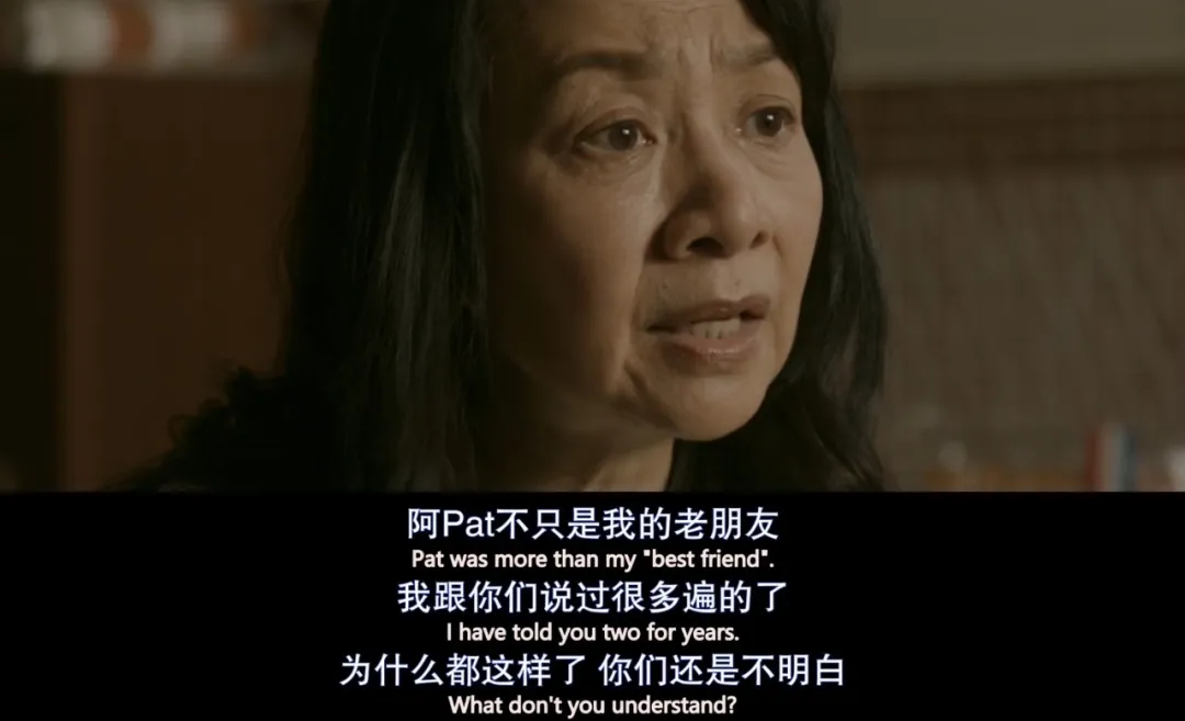 當外人問起她和逝者是什麼關係時,Pat的大嫂(許素瑩 飾)搶答道: