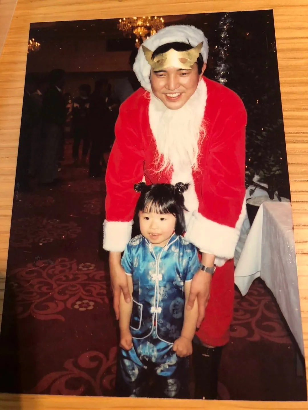當時他還是一枚小鮮肉,身穿聖誕老人的衣服,和女兒開心合照。