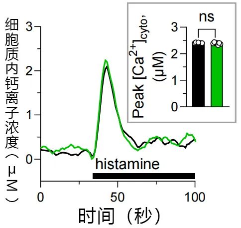 圖注:橄欖苦苷(綠色)不會促進提高整個細胞的鈣離子濃度