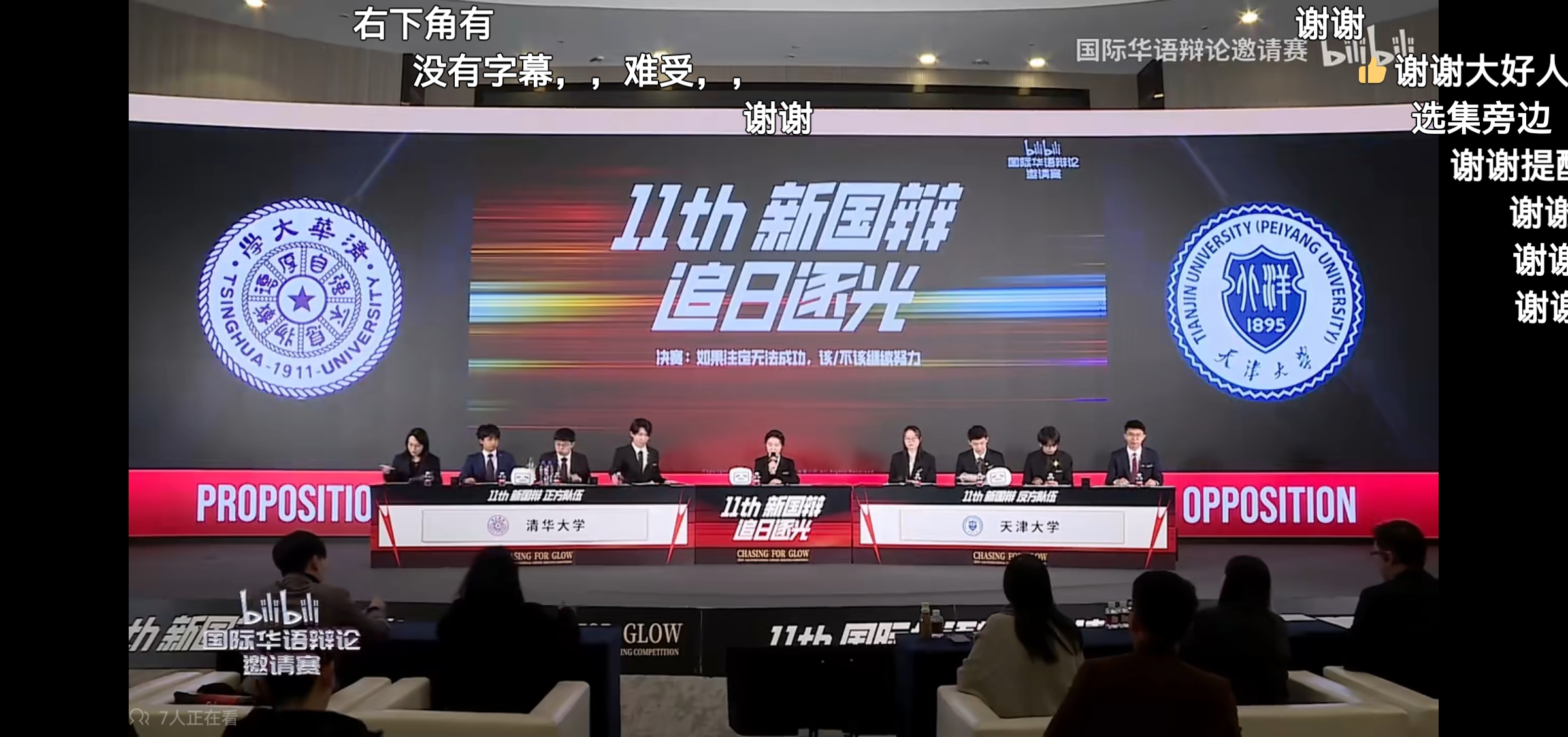 第11屆新國辯決賽“如果註定無法成功,該(正:清華大學)vs不該(反:天津大學)繼續努力”之辯中,清華大學隊以2:13大比分告負。