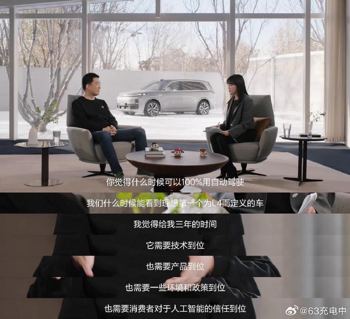 李想:給我三年的時間,它需要技術到位,也需要產品到位,也需要一些環境和政策到位,也需要消費者對於人工智能的信任到位。」