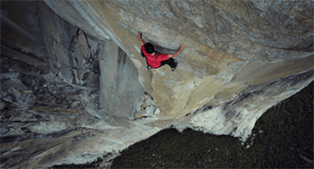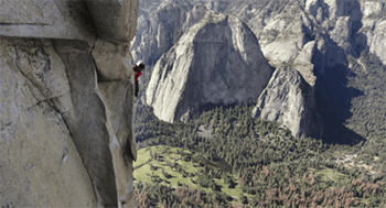 攀巖者亞歷克斯,不借助任何任何器械、繩索和防護設備,只靠自己的雙手雙腳,爬上900多米的酋長峯。