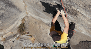 整塊花崗岩的質地,意味着只有幾毫米的地方供他着力,如果手抓錯了,就會直接摔落,連亞歷克斯自己都説:”這幾乎就是在玻璃面上行走。“