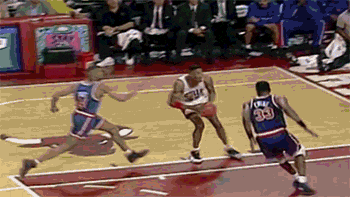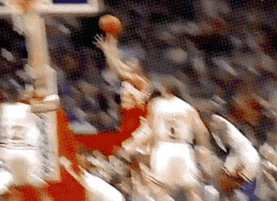 ——找到空檔(常是接球后)兩大步襲筐,他擁有(我認為)1990年代最優美的低手上籃。