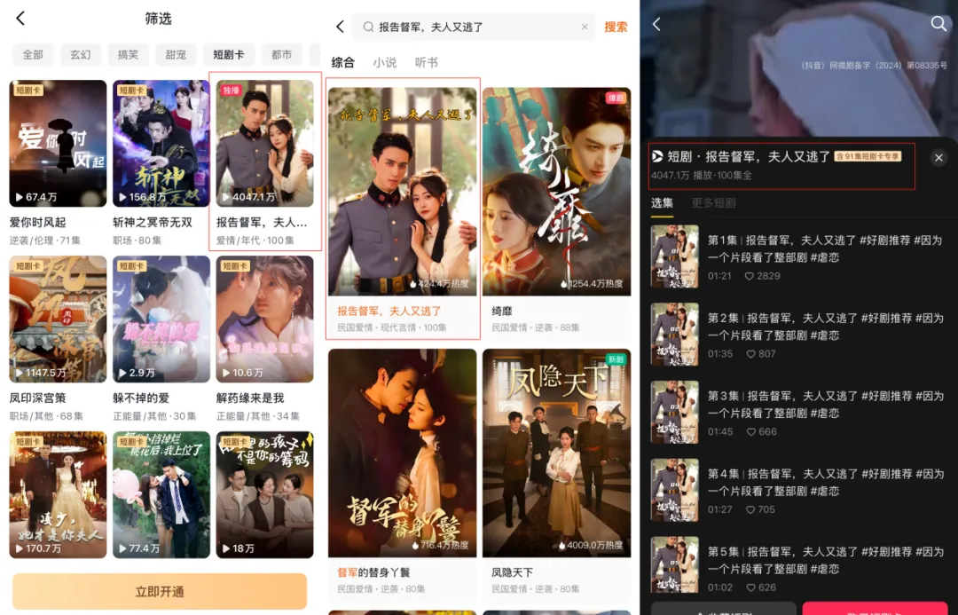 開年曾因一部爆款短劇垂直入坑的章穎,每每談及自己在上頭後的各項充值賬單都心痛不已,“沒法了,有些劇看完前面免費的正抓心撓肝呢,結果全平台所有視頻APP搜索完都拼不全一整部,那就只有充錢了。”