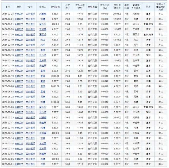 相較於目前的股價,比如蘭州銀行的時任行長蒲五斤,就浮虧了不少,其他高管的增持普遍也是浮虧狀態。