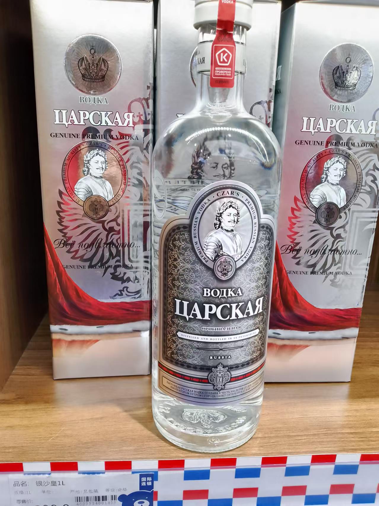 大悦城這家六到八成是俄羅斯商品,國產的也有不少。國產部分是屬於俄公司提供原料在國內生產,還是賣出再鍍金賣回就不清楚了。購物小票上店名是“中俄國家商城”,能用這個名字應該是得到了相關許可了吧?算是給產品背書了。