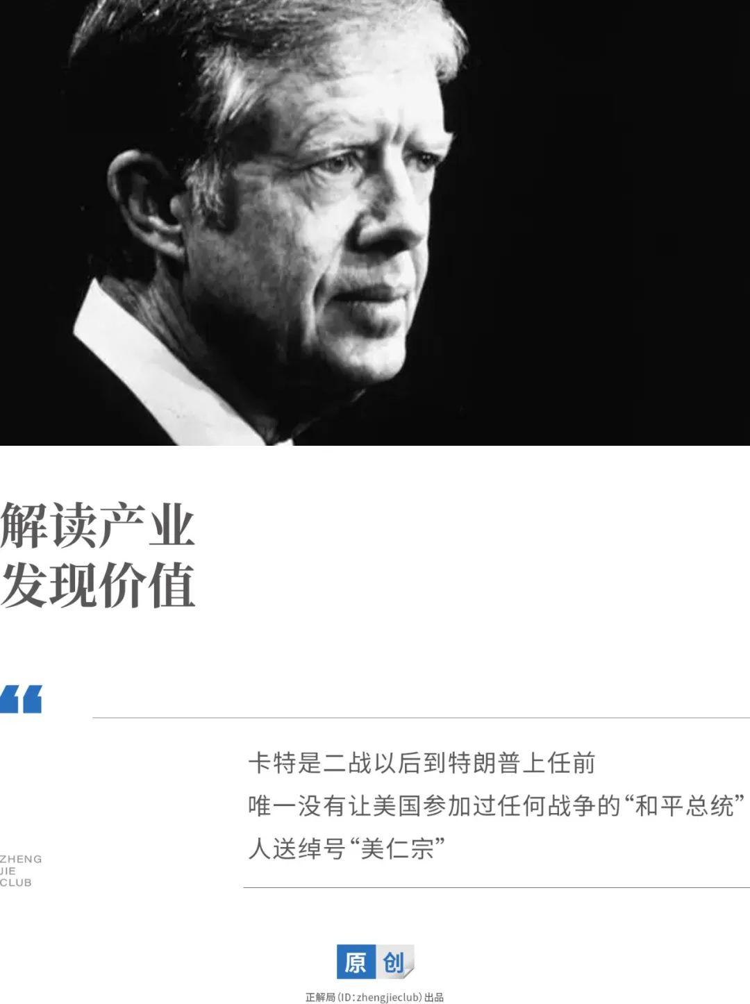 卡特是二戰以後到特朗普上任前唯一沒有讓美國參加過任何戰爭的“和平總統”,人送綽號“美仁宗”。