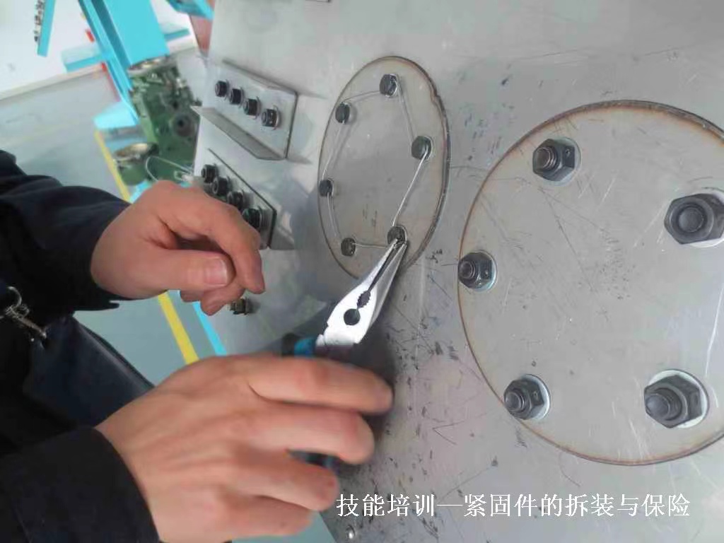 記憶最深刻的莫過於用開口銷加上開槽螺母來打螺絲了。在把螺絲和螺母擰好之後,還需要將開口銷通過螺母上的開槽從螺栓中間穿過去,然後還要將髮卡一樣的開口銷向兩端分開擰在螺母上,這樣才能確保這顆螺絲和螺母在後續的使用之中不會鬆動。以至於實習時看着自己打好的螺絲心中感慨:這螺絲要是能松那就見鬼了。