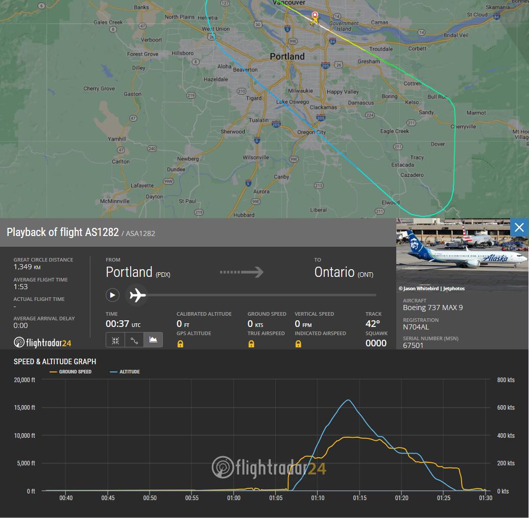 當地時間1月5日晚,阿拉斯加航空1282航班在執行從波特蘭飛往安大略的航班時,起飛後不久還在爬升階段,突然發生機艙壁脱落導致客艙快速失壓,飛行員立即返航波特蘭機場降落。