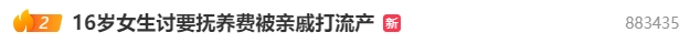 1月9日,山東臨沂的朱女士公開控訴,其16歲的女兒陳某某上門討要撫養費卻被前夫的親戚毆打致流產,陳某某父親稱當時並不知道女兒懷孕,自己也並不是不給孩子撫養費,願意在其出嫁時一次性補償。相關話題登上微博熱搜。