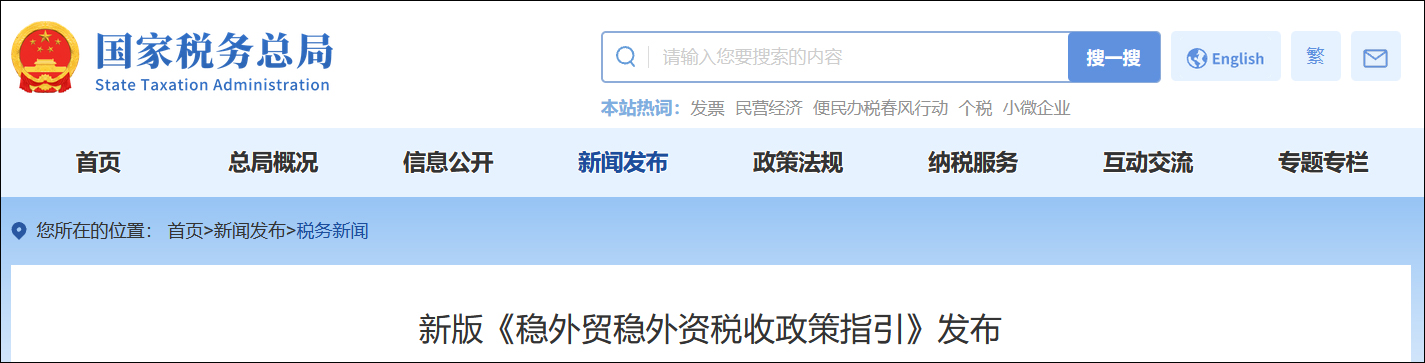 目前,新版《穩外貿穩外資税收政策指引》已在税務總局官方網站發佈,納税人可以登錄查詢、對照操作,適用適合自身發展的税收支持政策,充分享受政策紅利。