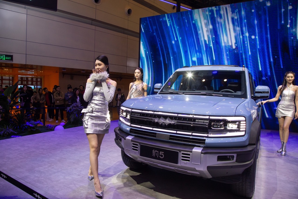 2023年11月,鄭州國際車展,圖為車模展示比亞迪旗下方程豹汽車豹5/IC Photo