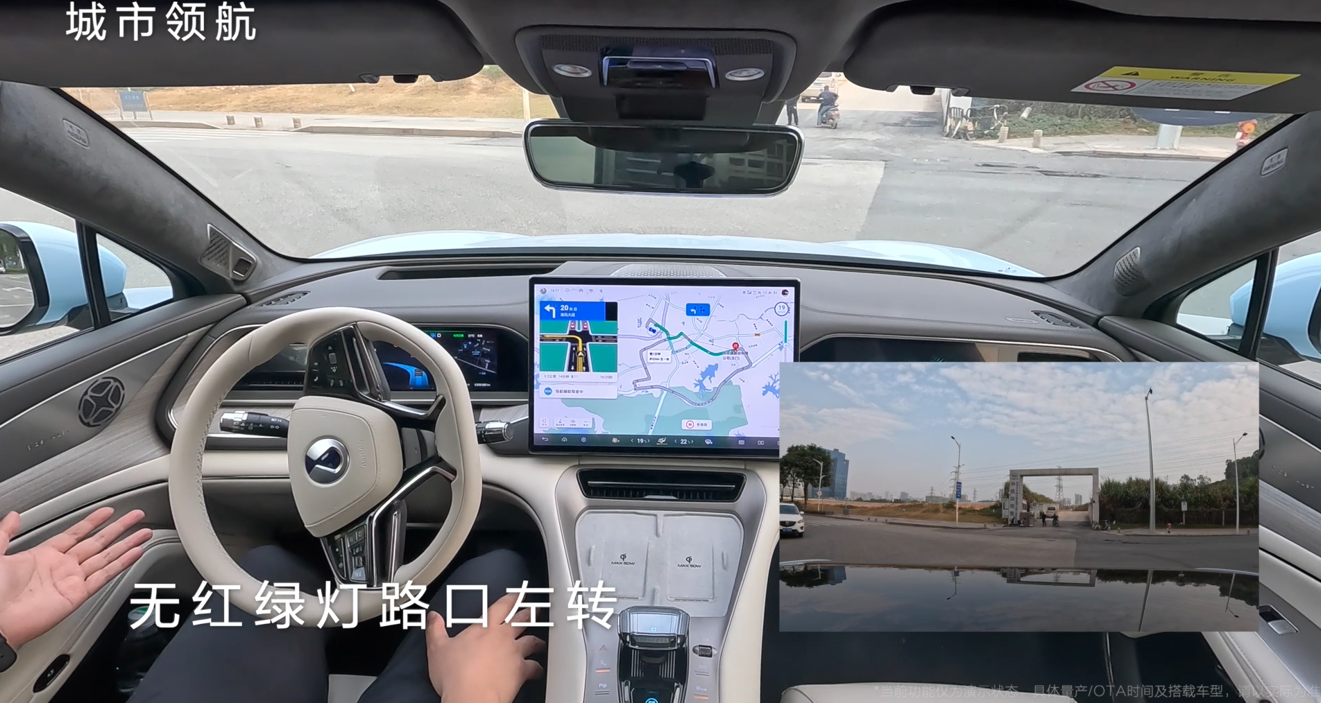 在高階智駕上,我們體驗了搭載比亞迪「天神之眼」系統的騰勢 N7 在城市 NOA 中的表現。在全場景智能領航的功能中,硬件、軟件、算法均由比亞迪全棧自研。