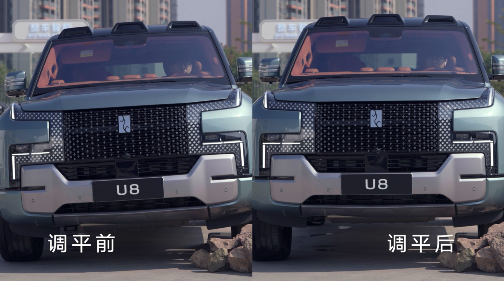 雲輦-P 還設有「超高」和「超低」兩檔高度調節。在「超高」檔位下,仰望 U8 的姿態不亞於奔馳 G 級 4x4。