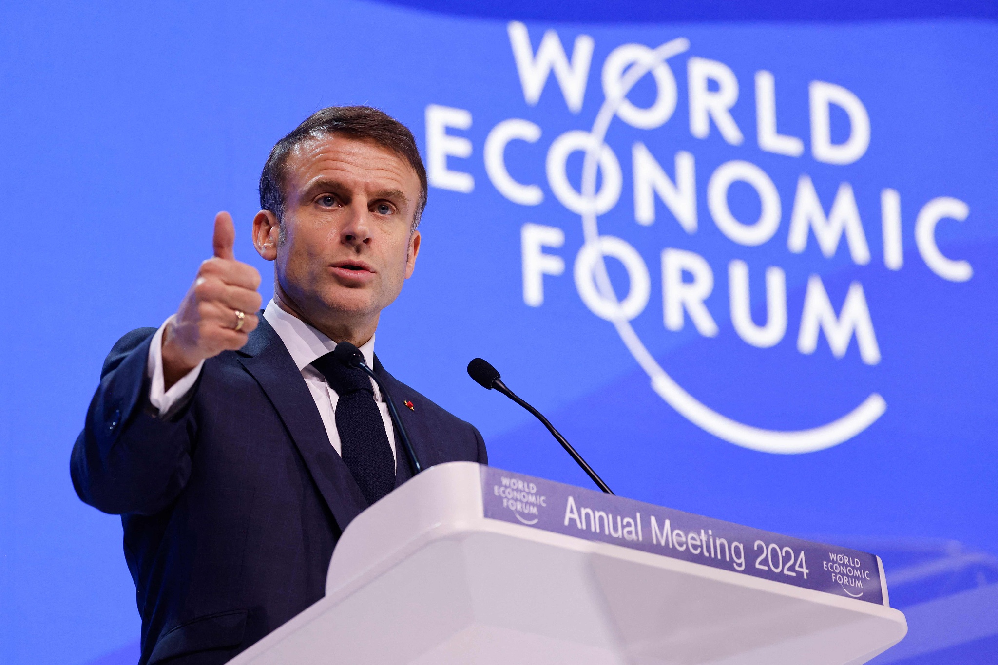 當地時間1月17日,法國總統馬克龍出席世界經濟論壇2024年年會 圖源:視覺中國
