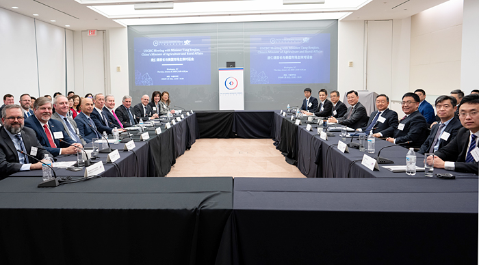 當天下午,唐仁健出席與美農業商協會和企業代表對話會並發表主旨演講。對話會由美中貿易全國委員會會長艾倫主持,美國科恩集團董事長兼首席執行官科恩等11位代表發言。會前,唐仁健會見艾倫和科恩。