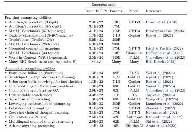 當訓練和參數超過一個閾值AI出現了智能湧現現象 圖片來源:“Emergent Abilities of Large Language Models”