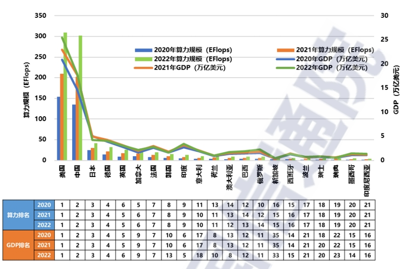 2022 年全球算力規模與GDP關係 圖片來源:中國信息通信研究院