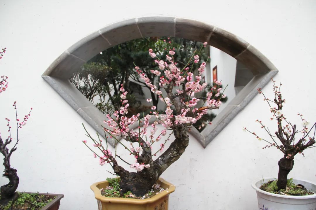 春節、元宵期間,嘉定區在南翔老街檀園內舉辦“梅開福到”新春檀園梅花展擺放形態各異的梅花盆景,增添新春的節日氣氛,供遊客入園觀賞,取景攝影。