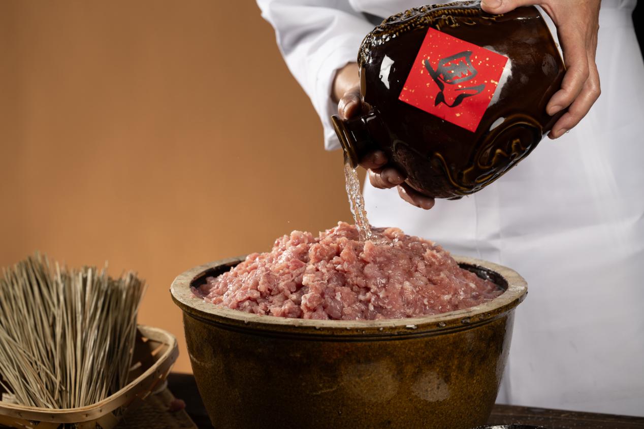 白酒是重要的臘腸製作調料,它不僅能起到殺菌抗菌的作用,所攜帶的芳香物質還是廣式臘腸增香的核心來源。為了能讓臘腸聞起來更香,何發坤跑遍了中山、江門等地的酒廠,嘗試了二三十家酒廠的酒,才終於找到一家合口感的產品。
