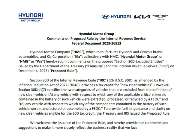 現代汽車在意見書中表示,雖然該集團目前正致力於按照規定進行必要的調整,但考慮到市場環境,調整電池製造供應鏈需要一定的時間;若美方不顧市場環境,強行要求立即執行,現代汽車即使竭盡全力也很可能無法達成美國製定的政策目標。