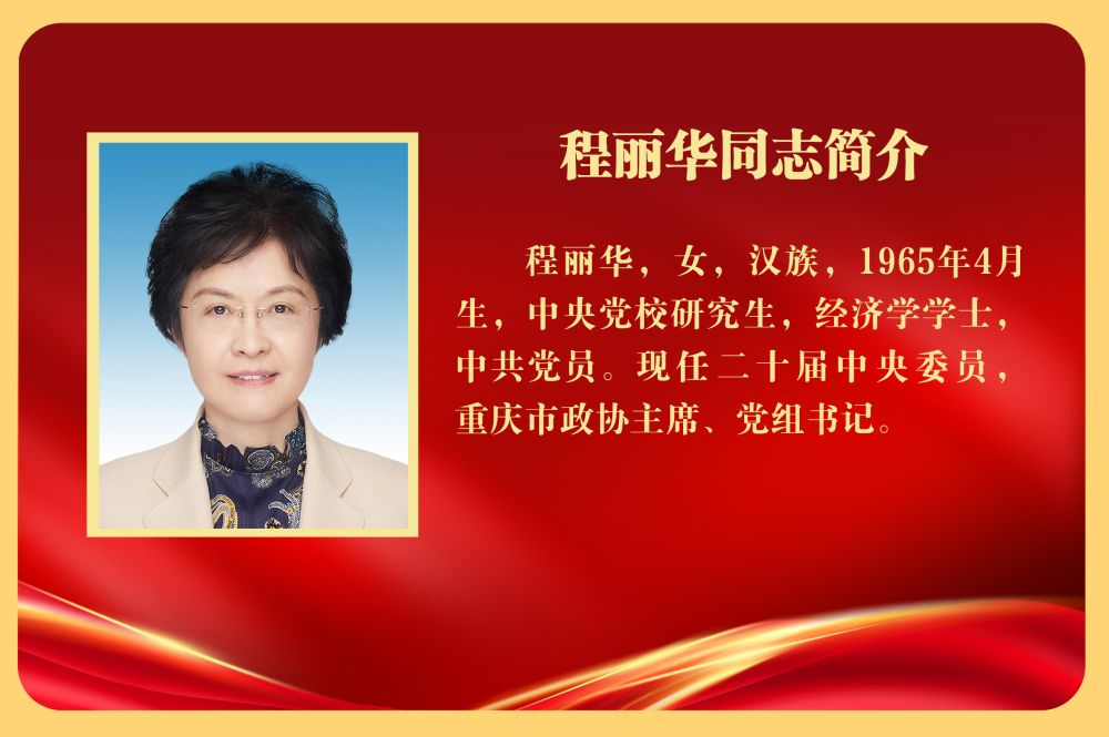 據新重慶消息,政協第六屆重慶市委員會第二次會議1月23日選舉程麗華(女)為市政協主席,增選宋碧琪(女)、徐江、滕宏偉為市政協常務委員。