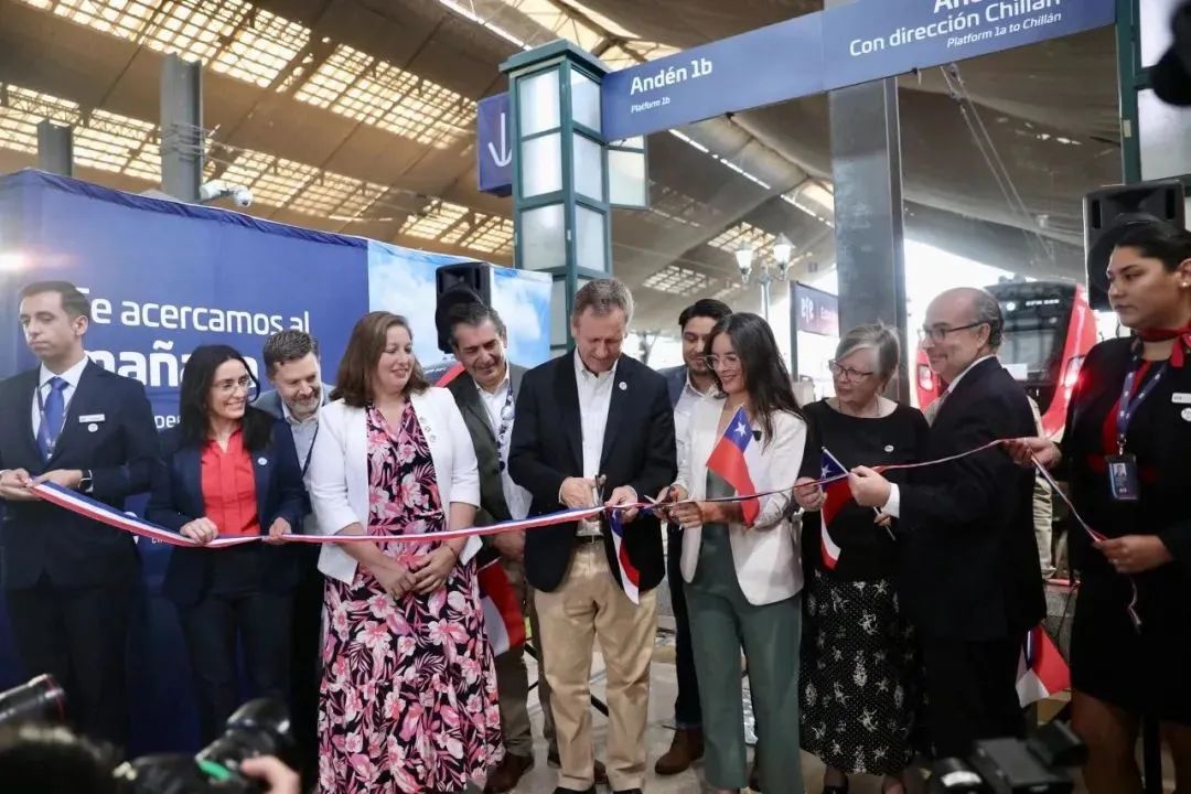 智利總統府秘書部部長卡米拉·巴列霍、智利交通和電信部部長鬍安·卡洛斯·穆尼奧斯、智利國家鐵路公司董事長埃裏克·馬丁共同為“中國造”新列車上線運營剪綵,並乘坐體驗了首發列車。