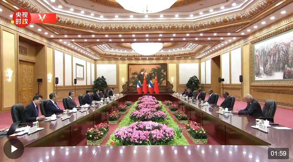 習近平指出,歡迎總理先生在2024年新年伊始訪華。你是今年首位訪華的拉美和加勒比國家領導人,這也是你第五次到訪中國,很高興時隔10年再次同你會面。總理先生是中國人民的老朋友,一向高度重視發展對華關係,堅定恪守一箇中國原則,在涉及中國核心利益和重大關切問題上給予中方堅定支持,我對此高度讚賞。新形勢下,中方願同安方加強發展戰略對接,推動中安關係取得更多成果,更好惠及兩國人民。