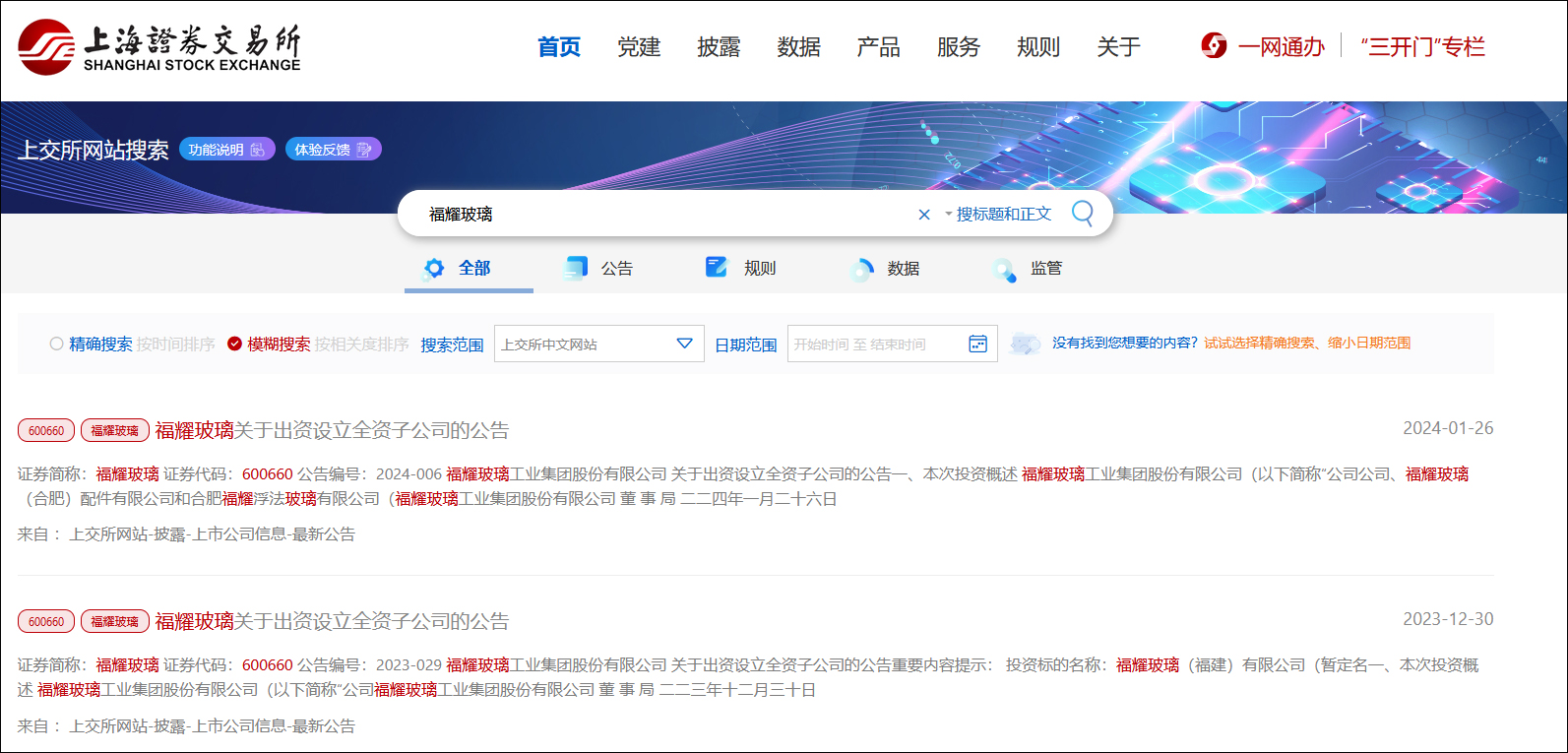 2023年12月30日,福耀玻璃發佈公告宣佈,擬於福建省福清市設立全資子公司福耀玻璃(福建)有限公司(暫定名),並投資人民幣32.5億元用於建設汽車安全玻璃項目,配備先進的現代化生產設備,最終形成年產約2050萬平方米汽車安全玻璃的生產規模。