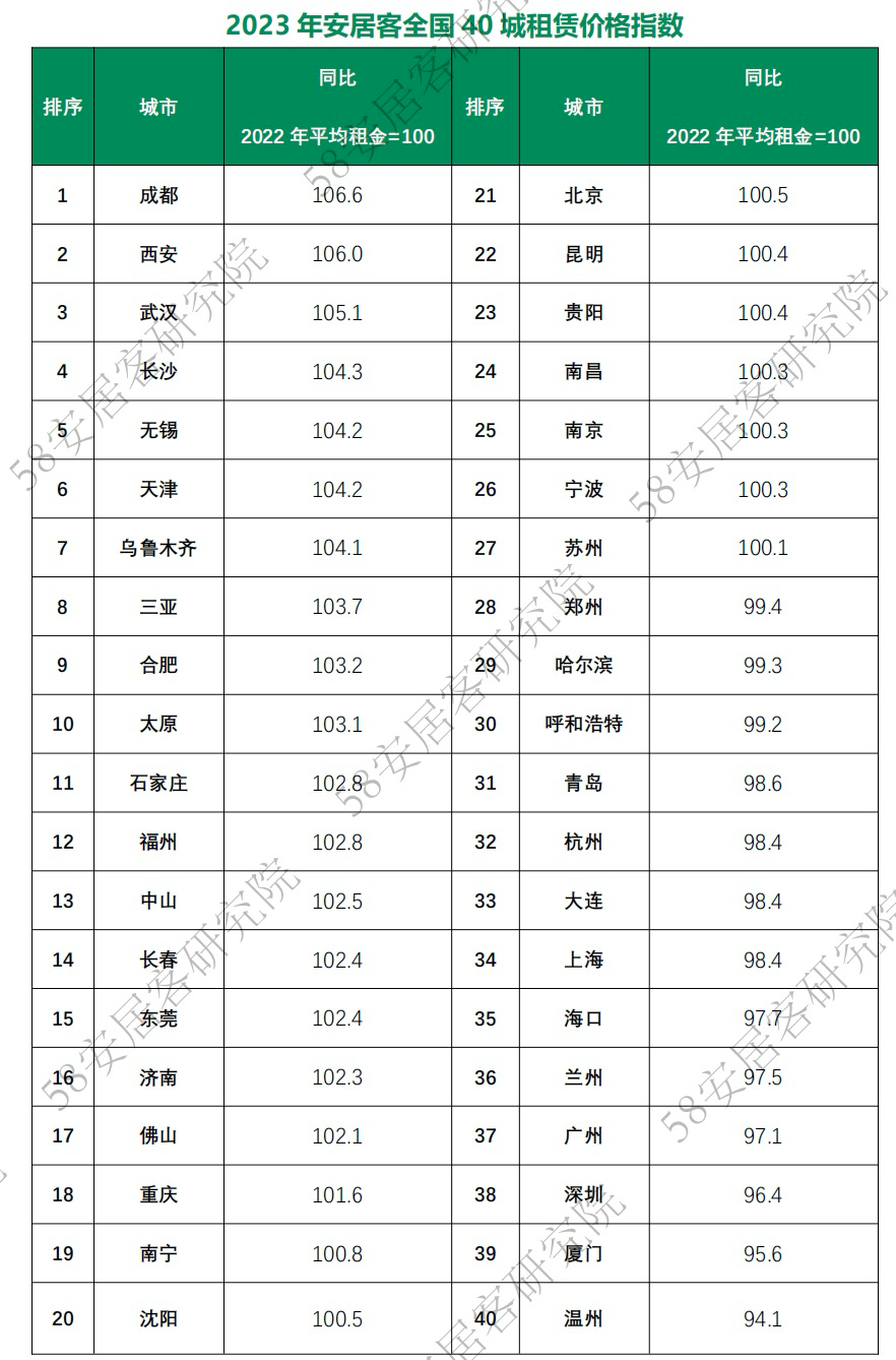 回顧2023年租房市場,58同城、安居客發佈的《2023年全國租賃市場報告》顯示,全國重點40城租賃市場整體呈現復甦態勢,市場供需表現較2022年大幅回升,有27個城市租賃價格指數同比上漲;春節後租賃市場呈現出供需兩旺的態勢,核心二線城市租賃市場掛牌環比走勢更強;另外,保障性租賃住房進入供應爆發階段,其中深圳保障性租賃住房供應占比達到55%,為一線城市中最高。