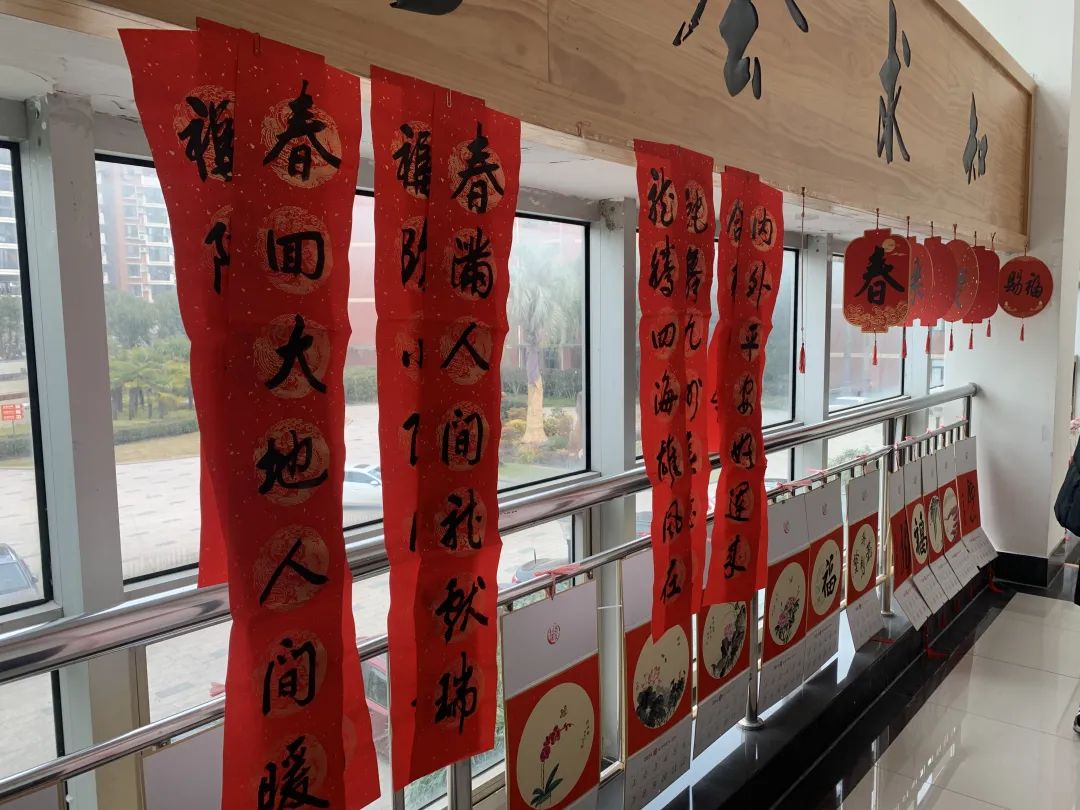 現場,來自歌林春天書畫班的吳進農、諸曉歐和蘇榮德,共同為居民們書寫春聯和福字。一件件儒雅的書畫作品寄託了吉祥如意的祝福。記者在大禮堂門口看到,這些春聯和福字掛在牆上、擺放在桌子上,渲染了喜慶的氛圍,居民們一邊駐足欣賞,一邊領取自己中意的對聯和福字。
