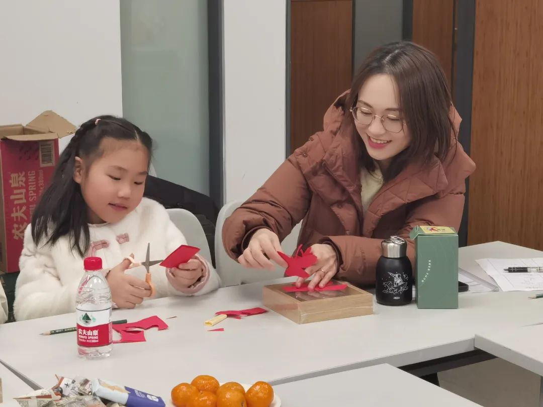 現場,年俗問題回答、默契小遊戲、寫福字等互動體驗項目吸引了大小朋友們的積極參與。在傳統手工藝剪窗花環節,老藝人一邊講解一邊演示,簡單幾剪刀,一隻栩栩如生的蝴蝶就出現在手中。這種“指間的魔法”引得大家躍躍欲試,孩子們開始在家長的幫助下,製作自己心目中的最美窗花。