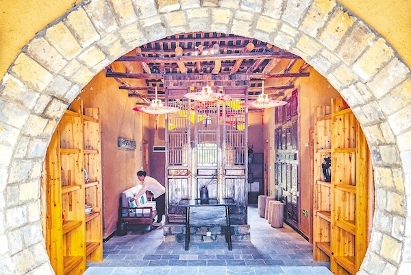 ▲ 麻城市黃土崗鎮桐梘衝村茯苓窩,村民在由老屋升級改造的共享民宿裏忙碌