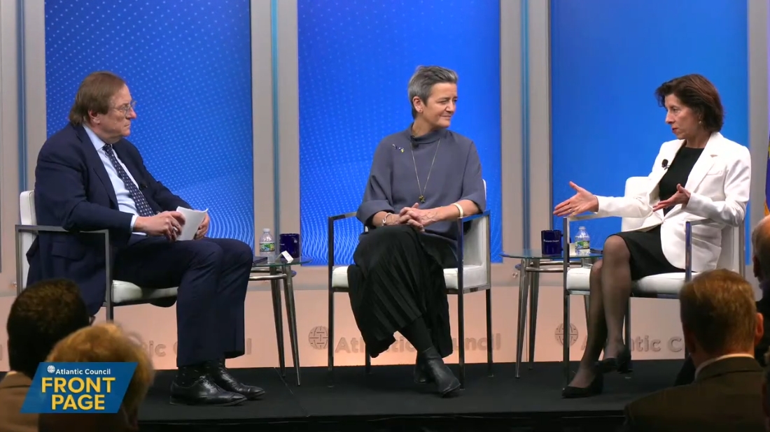 根據大西洋理事會發布的會議實錄,一同參與討論的還有歐盟競爭事務專員專員瑪格麗特·維斯塔格(Margrethe Vestager),活動開場主要圍繞美國—歐盟貿易和技術委員會會議(TTC)取得成果展開,這一議程被讚賞“重振了美歐關係”。