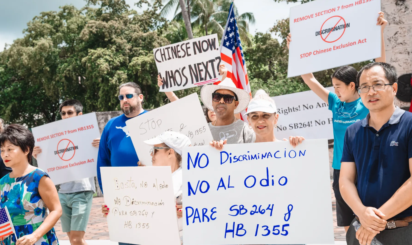 2023年4月,數十名華裔美國人抗議佛州禁令
