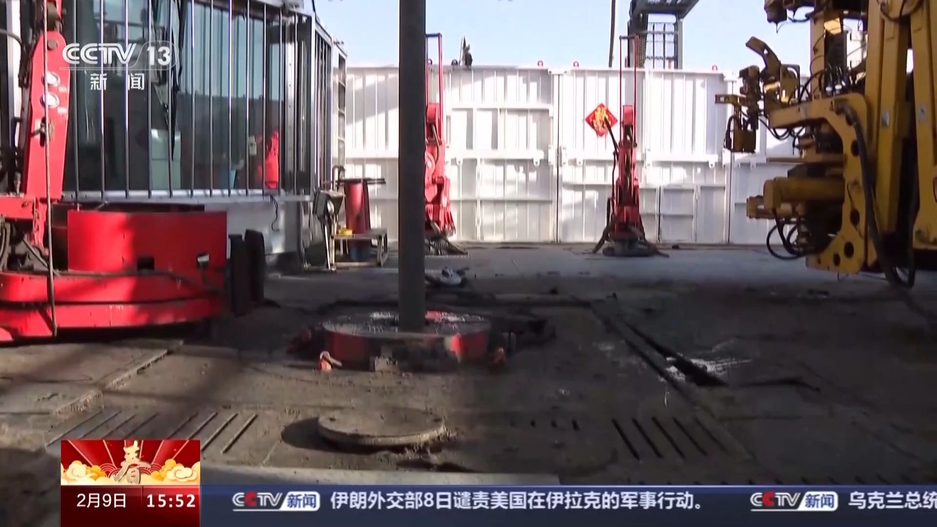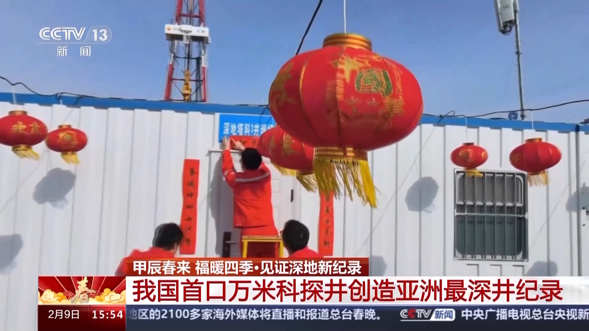 總枱央視記者 古峻嶺:今天是大年三十,塔里木油田的工作人員把井場佈置的是紅紅火火。為了這口井,今年井場有一百多名工作人員沒有回家,堅守在崗位,為的就是加快打成中國第一口萬米深井,現在鑽頭已經鑽到了地下9850米,距離萬米還剩100多米。