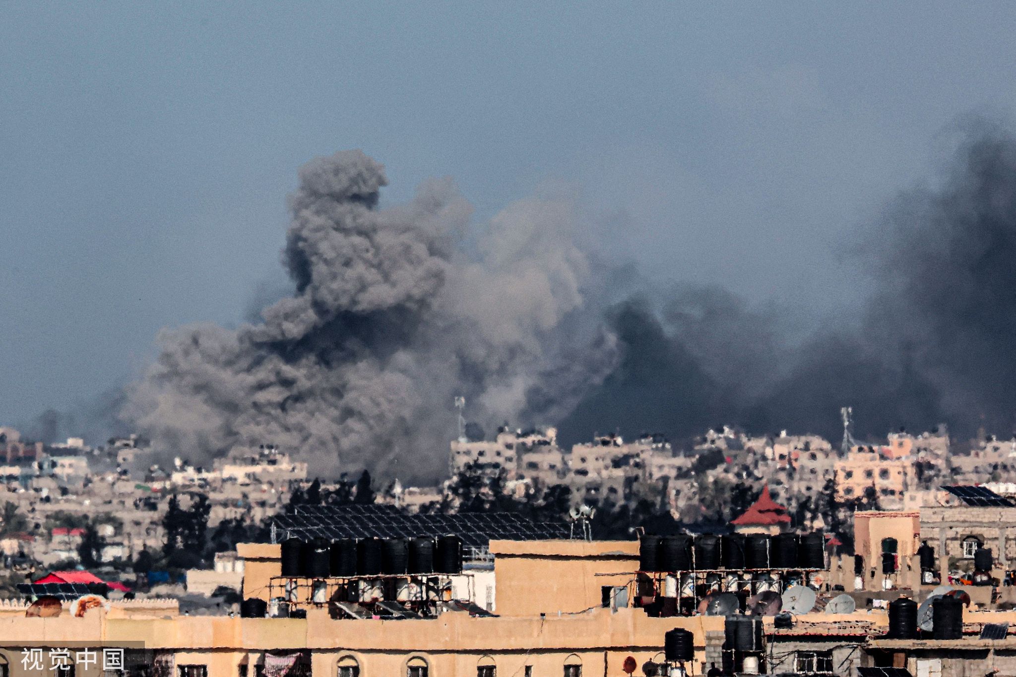 當地時間2月9日,加沙南部城市汗尤尼斯遭到以色列轟炸 圖源:視覺中國