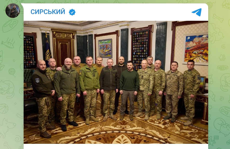 瑟爾斯基在社交媒體發佈澤連斯基同烏軍新領導層合照