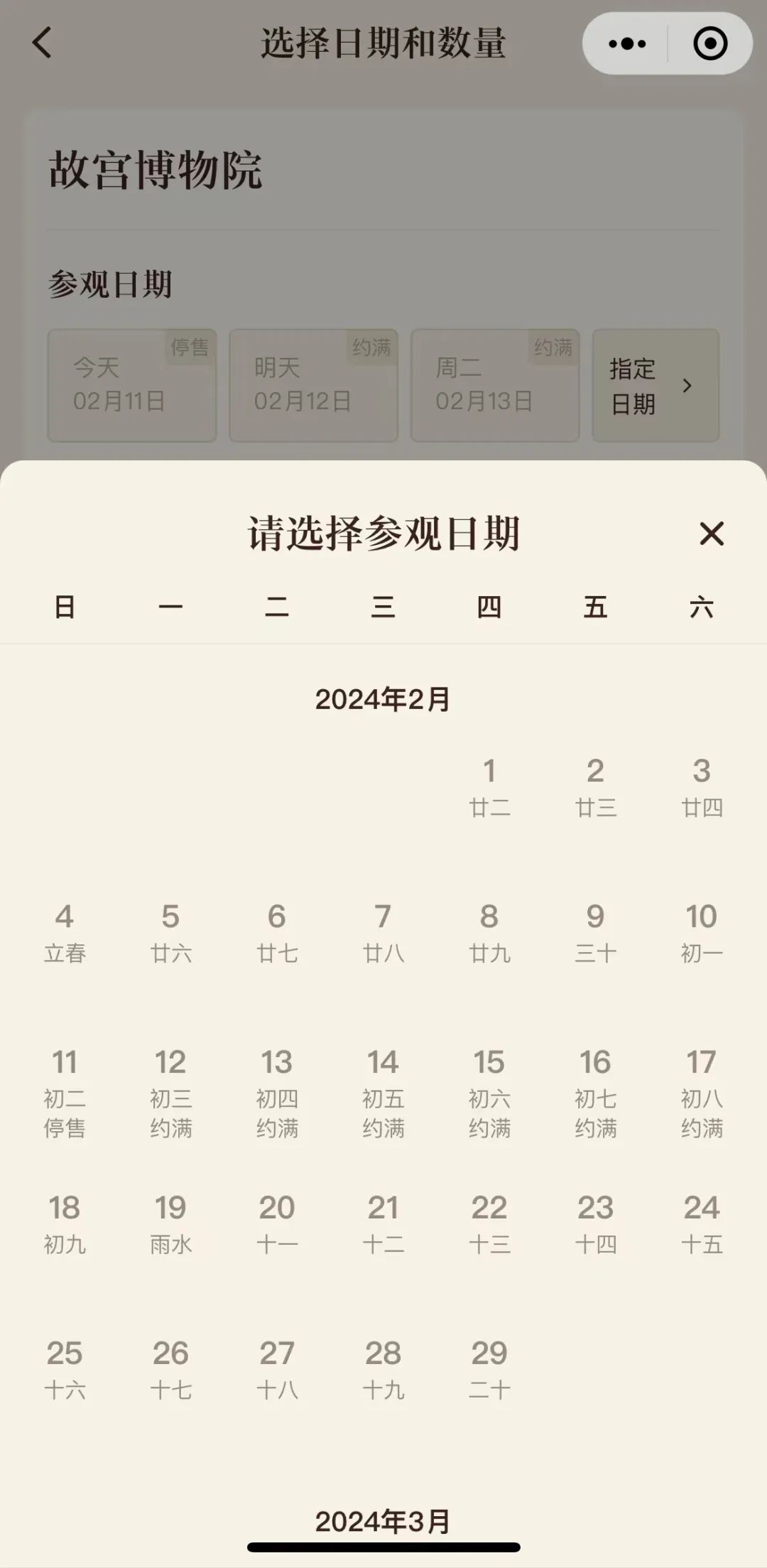 故宮博物院門票預約平台顯示,目前到初八門票均已約滿。