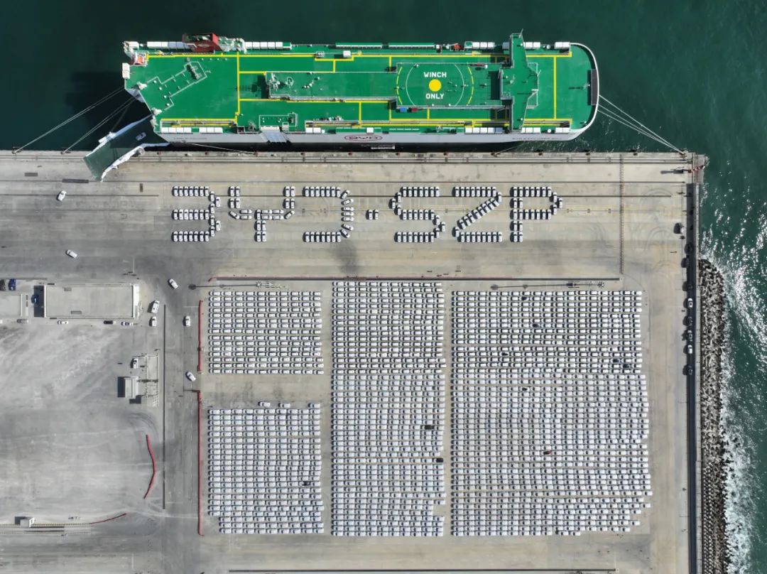 新年伊始,一艘名為“比亞迪探索者1號”(BYD EXPLORER No.1)的運輸船在山東煙台龍口交付離港,1月16日上午,裝載5449台比亞迪新能源車的該船緩緩駛出深汕小漠國際物流港,首航啓程前往歐洲。